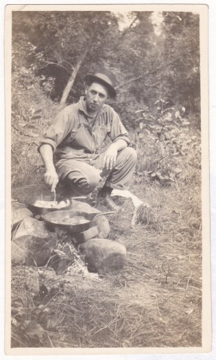 So I guess somebody took a picture of Alva cooking some fish after he took over cooking duties from his mother, and decided to give this copy to the mother, who in turn decided to pass it on to somebody she felt might appreciate it more. Is that how others understand it? It’s interesting that he took over the cooking, claiming there was too much smoke, when there’s no smoke in the picture. Also, when I enlarged it, it was fun to realize that even with this very casual outfit, there’s what appears to be a nice watch chain attached to the front.