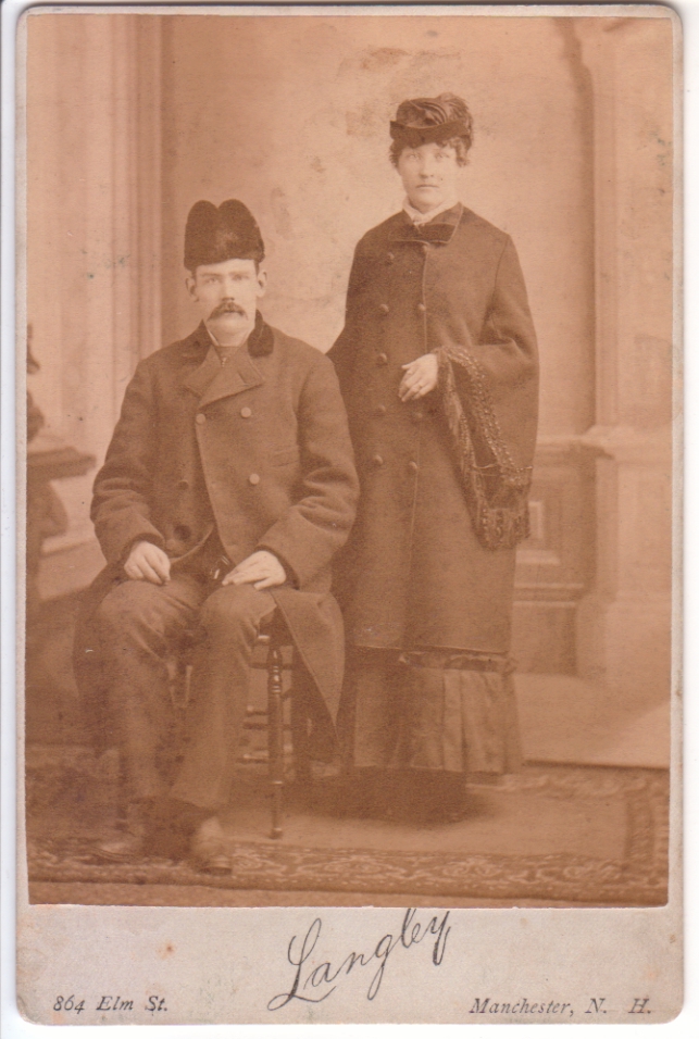 Photographer is Langley of Manchester, New Hampshire.  Written in pen on the back is:  Dad, his first wife / Mable’s mother.