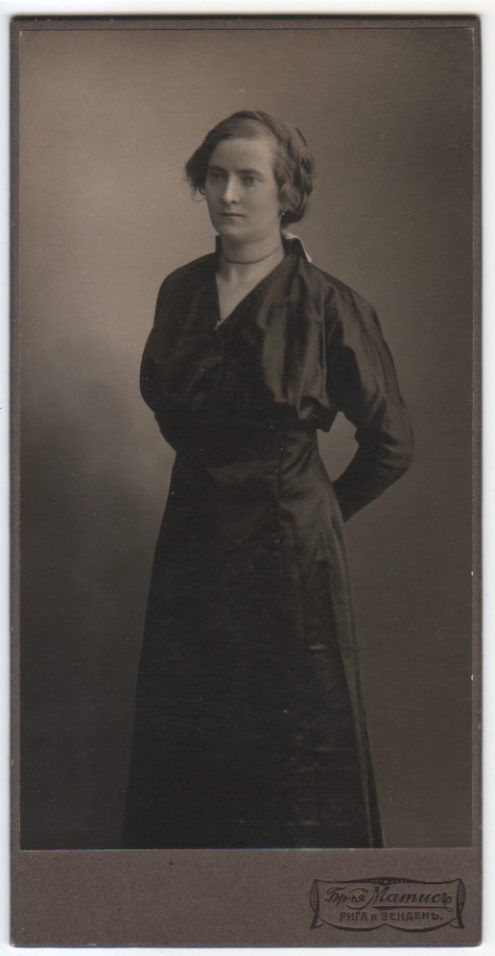 Undated and unidentified. At last my college Russian can come in handy in helping me decipher this Cyrillic. The photographer’s name appears to translate to something like Mamus. The photographer is located in Riga and Venden, Venden being the Livonian (language of Latvia) name for the town of Cesis.
