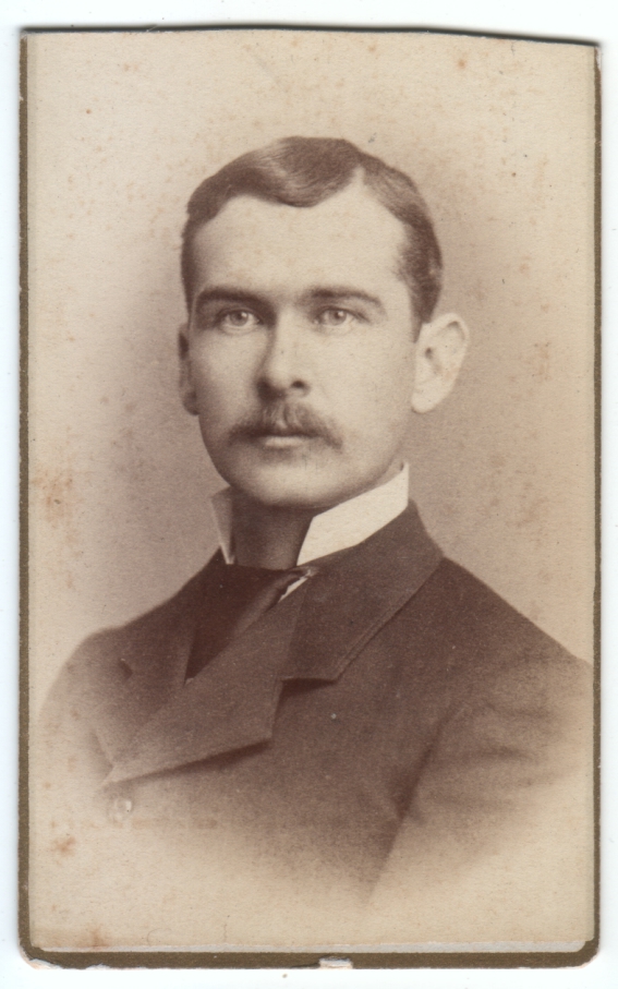I’ve posted mostly women and children this week, so I figured it was time for another man.  But what sort?  Well, I just watched Washington Square, the 1997 movie based on the Henry James novel, and it put me in the mind to find a Morris Townsend type (Ben Chaplin in that movie, or Montgomery Clift in The Heiress, another adaptation).  I’m not sure if this is precisely the right period (the novel is from 1880), but it’s close enough.  This guy looks like a handsome cad who could snake through society on his wits and charm, convincing a plain, innocent, awkward girl that he loves her, even though he sees only dollar signs.  Even in this photo he looks like he’s scheming!  So he’s today’s contribution.  Hiss if you must.  But as I was scanning this, I thought, “Wait, didn’t I post something from Manchester before?”  Sure enough, it was this guy.  Another devilish cad!  Apparently the same photographer even!  Coincidence?  You be the judge.
