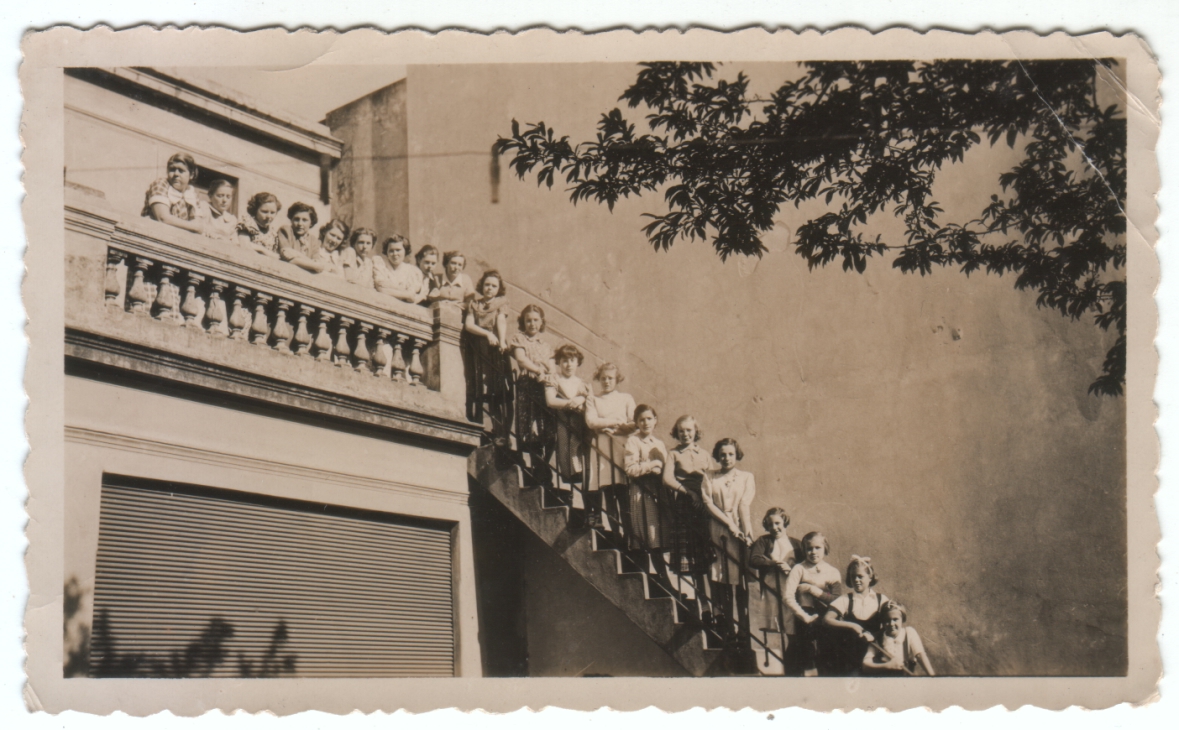 Here’s one that leaves me a little mystified.  The composition is nice, but who are these people?  It’s hard to get a clear look at them, but they appear to get generally younger the farther right/down they go.  Could these be the teachers and students at a school?  An array of employees somewhere?  Some sort of women’s club?  The location puzzles me, too.  It looks like they are standing around a garage.  And while they are obviously posing for the camera, only a few seem to be smiling at the camera, as if somebody took a test photo without warning them.  In any case, I think it’s a fun picture to look at, and it’s fun to guess.