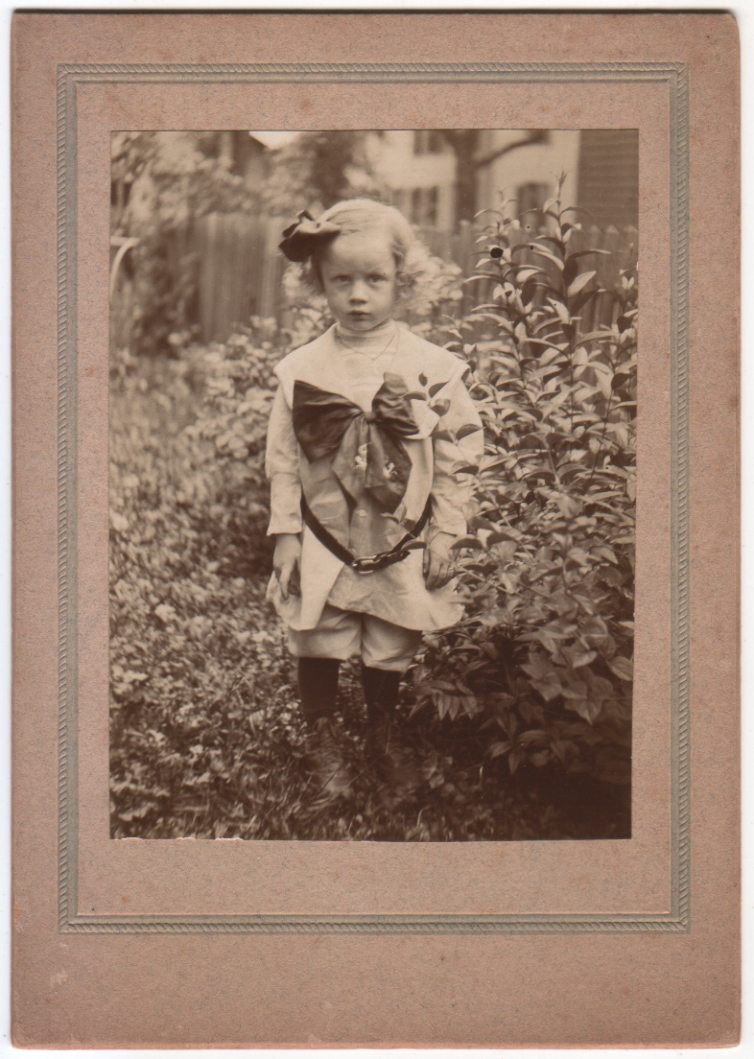 On a second look, after weeks of staring at the likes of Buster Brown and Yellow Kid comics, those little knee pants and that middy blouse are just screaming “boy” at me! I don’t think it’s at all strange that a boy might wear a religious medal or something (looks like a cross to me), but a girl would certainly not wear knee pants.