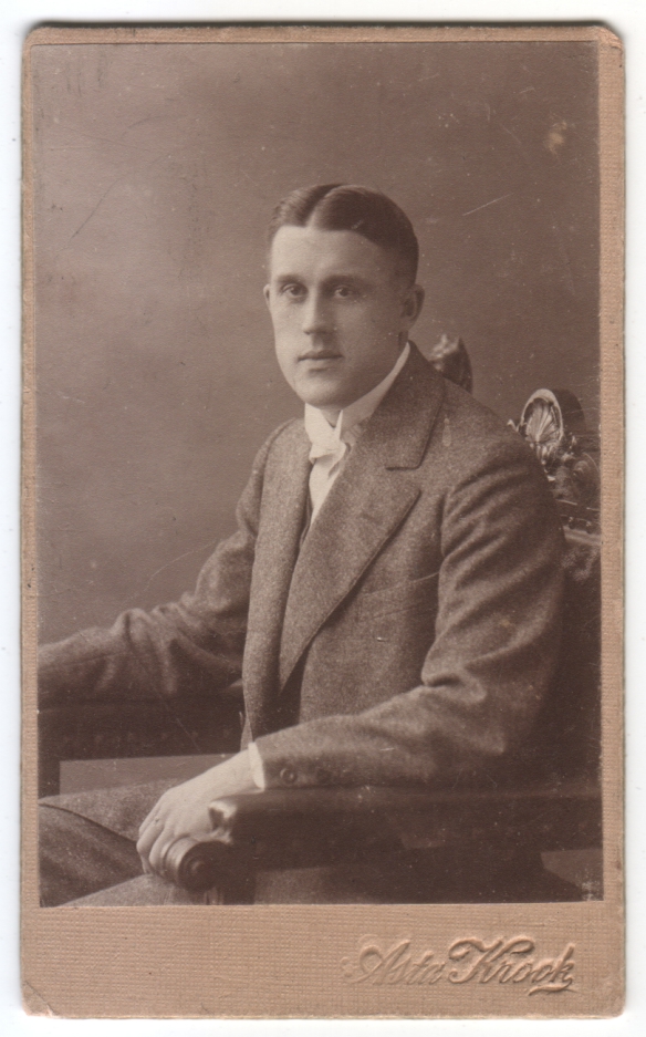 After a couple days of snapshots, I figured it was time for an older photo.  This guy was sitting on top of a stack, and he looked like a pleasant enough fellow to introduce to the world, so I grabbed him.  I was never quite able to read the photographer’s name until I enlarged it, so I was curious to see what it might reveal.  I suspected it might be European, since it is rather sturdy, and my completely unscientific survey of my photos seems to show that the CDVs from Europe are on a thicker, sturdier card stock, almost like the quality of a cabinet card, than the American ones.  (Or perhaps it could be said that Europeans created cabinet cards that were the size of CDVs?  Does anyone have knowledge of this?)  Sure enough, the enlarged scan revealed the name to be Asta Krook, whom a quick internet search revealed to be a photographer from Stockholm, Sweden.  Plenty of Krook’s photos can be seen online, including this one, which has a better view of the same chair.