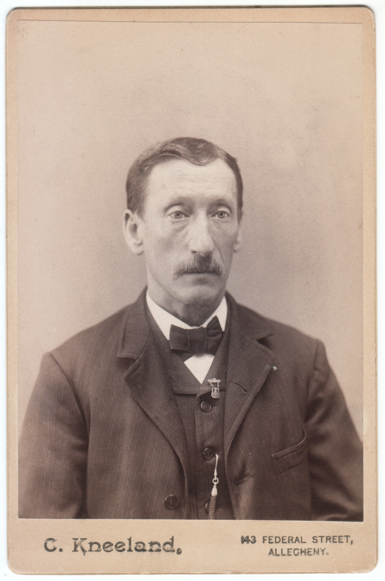 Photographer is C. Kneeland of Allegheny (now Pittsburgh), Pennsylvania.  Written on the back in pencil is Masonic pin and hair work fob.