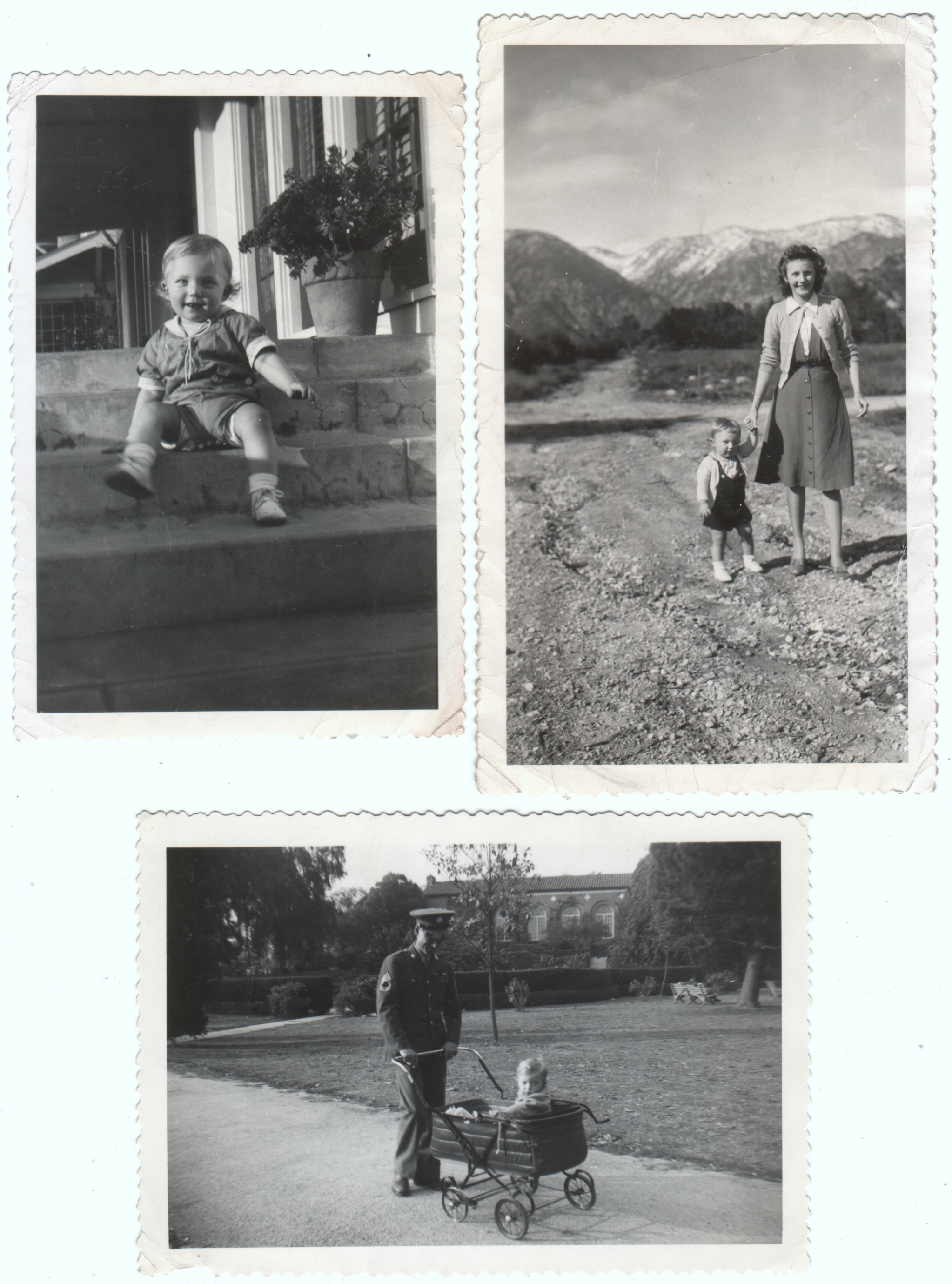 Each has writing on the back in pen.  Upper left:  March – 1944 / Christopher – 17 months.  Upper right:  Feb. 1944 / Chris – 16 months.  Bottom:  June 26, 1944.