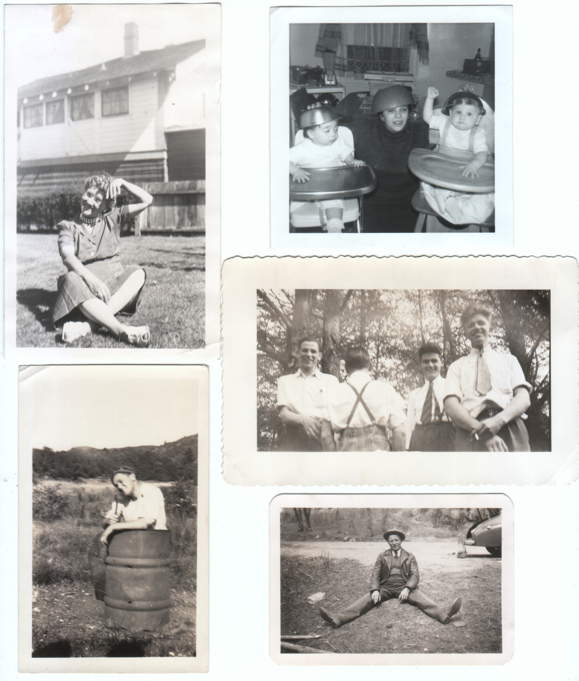 Written on the back of the upper left photo is: Helen asked her Grandma to pose for her but she couldnt wait till she got down so its really cute. I believe the man in the lower right is also pictured here and here. Otherwise undated and unidentified.