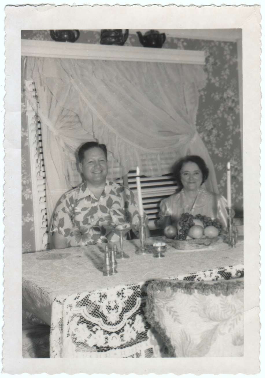 Okay, I’m sorry.  I resisted posting this photo for a long time, but I finally couldn’t help it.  I love this photo!  Granted, it’s not flawless (I wish the woman were in sharper focus), and it’s not conventionally pretty, but I don’t care.  Let me explain a bit, if I can.  (This explanation may make sense, but if not, then just enjoy the photo for the jolly image it is.)  About ten years ago I stumbled across a book (that I stupidly didn’t buy before it went out of print) featuring the portrait work of two photographers from what is now Mali, and it exploded my notions of what makes a good photo by presenting images of clashing patterns and unconventional set-ups that I would normally have found ugly, but which had an undeniable power and beauty to me.  (The photographers were Seydou Keita and Malick Sidibe, and examples of what I’m talking about are here and here.)  Additionally, I was starting to be aware of the art world’s embrace of tabloid-style news and documentary photography, such as the work of Weegee, with its raw energy and unvarnished perspective.  That brings me to today’s photo.  It’s hardly some museum piece, and I’m probably giving it too much credit, but I feel it has a potent quality that I wouldn’t have appreciated before I grew to appreciate those other works.  The craziness of the contrasting lines and patterns (the hard horizontal lines of the blinds and table contrasting with the hard vertical lines of the candles, contrasting with the soft billow of the curtains; the clashing patterns of the wallpaper, the tablecloth, his shirt, the chair fabric, etc.) gives it a visual excitement that keeps my attention in constant motion even after my eyes have adjusted to the visual chaos, and the glare of the flash gives it a paparazzi feel that implies we are witnessing a special moment.  Above all, the warmth and cheer of the scene is infectious.