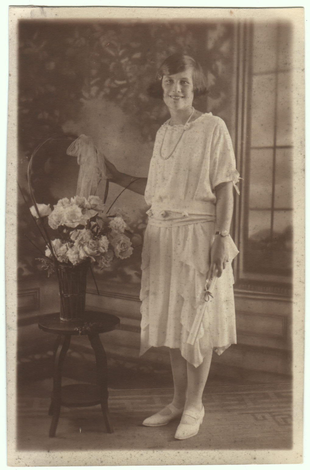 A reader comment on yesterday’s post requested more photos showing rituals and ceremonies.  I’m guessing this one is a photo commemorating a school graduation.  I have a number of school portraits that resemble what we think of today as school photos, basic headshots handed out to friends, often with inscriptions, though it seems the students went to individual portrait photographers, rather than having a single one come to the school as they do today (I could be wrong about that).  But this one, from maybe a decade or so earlier, shows some items associated with the occasion, including the scroll and some congratulatory flowers (though they might, of course, be photographer’s props).  Above all, it’s a very pretty, full-length portrait that is simply a pleasure to look at.