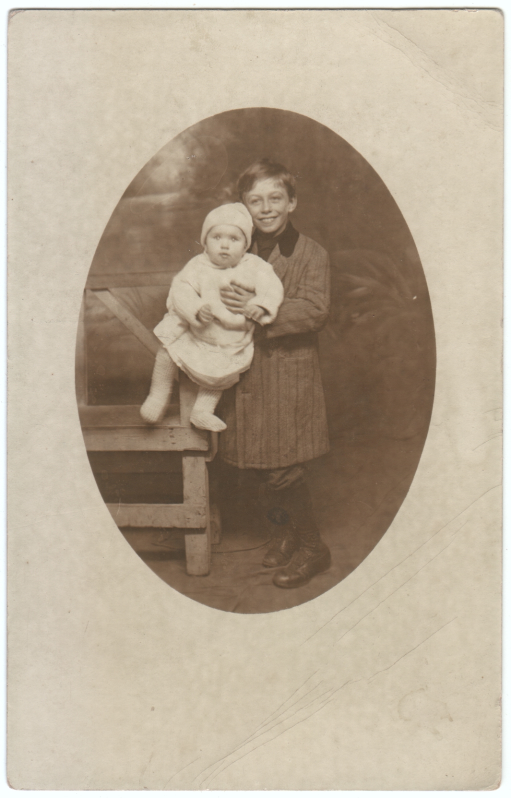 3. I assume these two are sibs. But whatever the relationship, the older boy’s smile and relaxed pose make me think he is quite fond of his little brother or sister. We do read things into these photos.