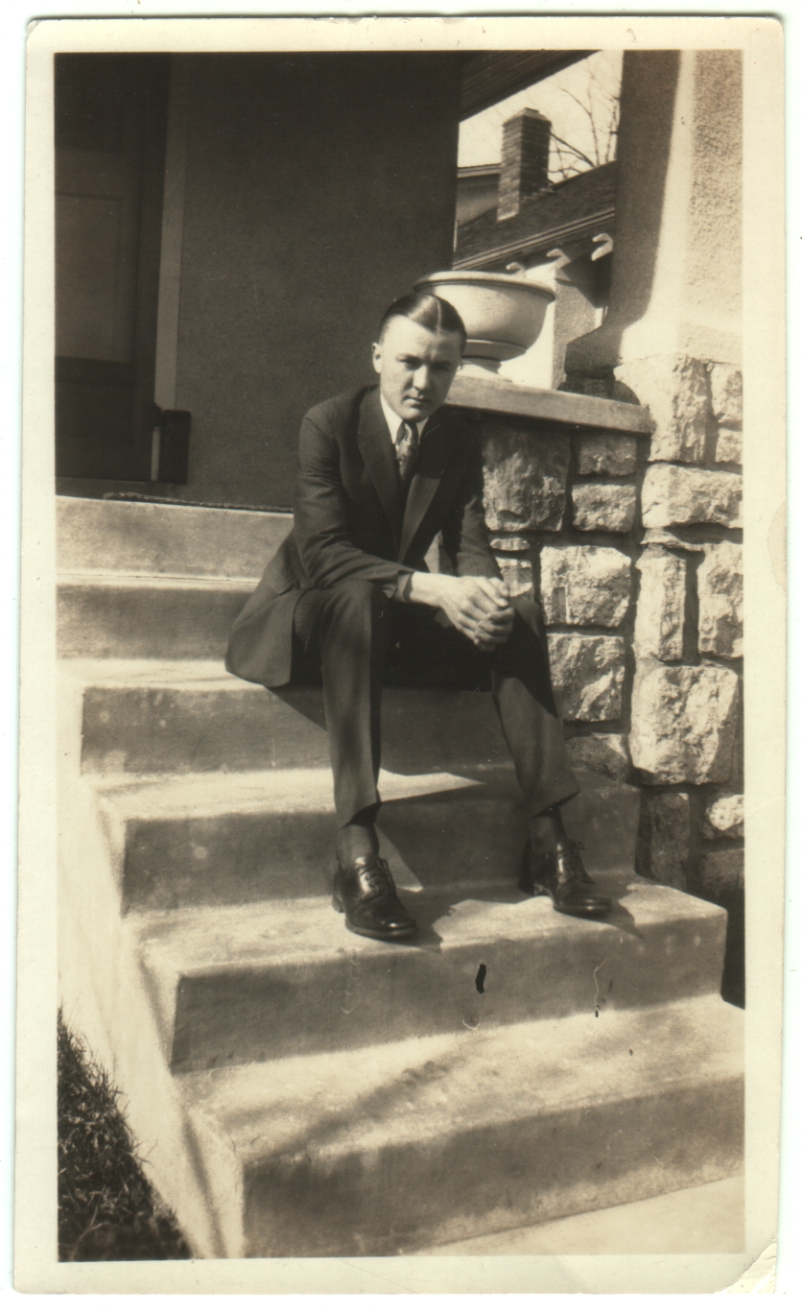 This is another one of the ones my friend Nathan gave me.  I have two other photos of individuals (a woman and another man) posed on or at these steps, but this is the best one, sharp, centered, unfaded and undamaged.  I don’t have much to say about him (except that he reminds me a little of Calvin Coolidge).  But he’s another person from the past whom we can stare at, consider, and wonder about.