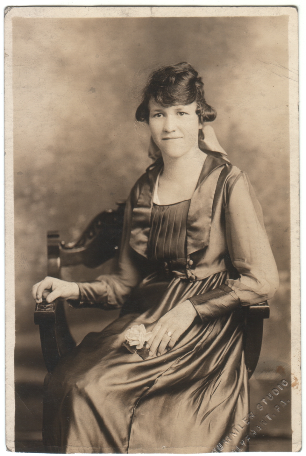 As I’ve mentioned before, I have a disproportionate number of photos in my collection from the small town of Olyphant.  I’ve posted others here.  I guess I got them all from the same source.  But unlike sometimes when I buy a bunch of photos hoping for some gems, I have liked all of the Olyphant ones.  This one is no exception.  She’s done up very attractively, and she looks rightly pleased.
