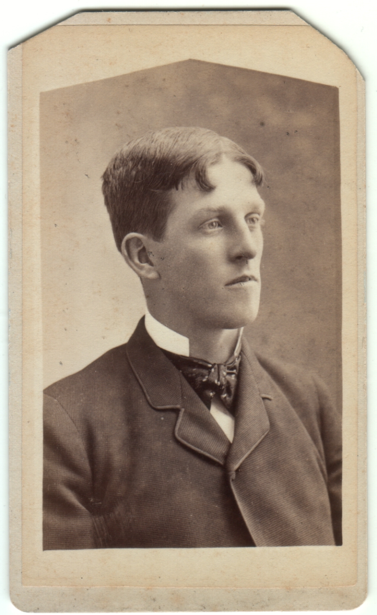 This is another photo that my mother gave me as a gift last year. It’s the second CDV from North Adams that she gave me that I’ve posted. (The other one is here.) While the photographers are different, and the subjects don’t appear related, I’m intrigued by the way they both have interesting shapes to their borders. Of course, the fact that they are similarly trimmed may mean there is some connection. Meanwhile, there’s this young man to consider. Quite the stately, chiseled profile.