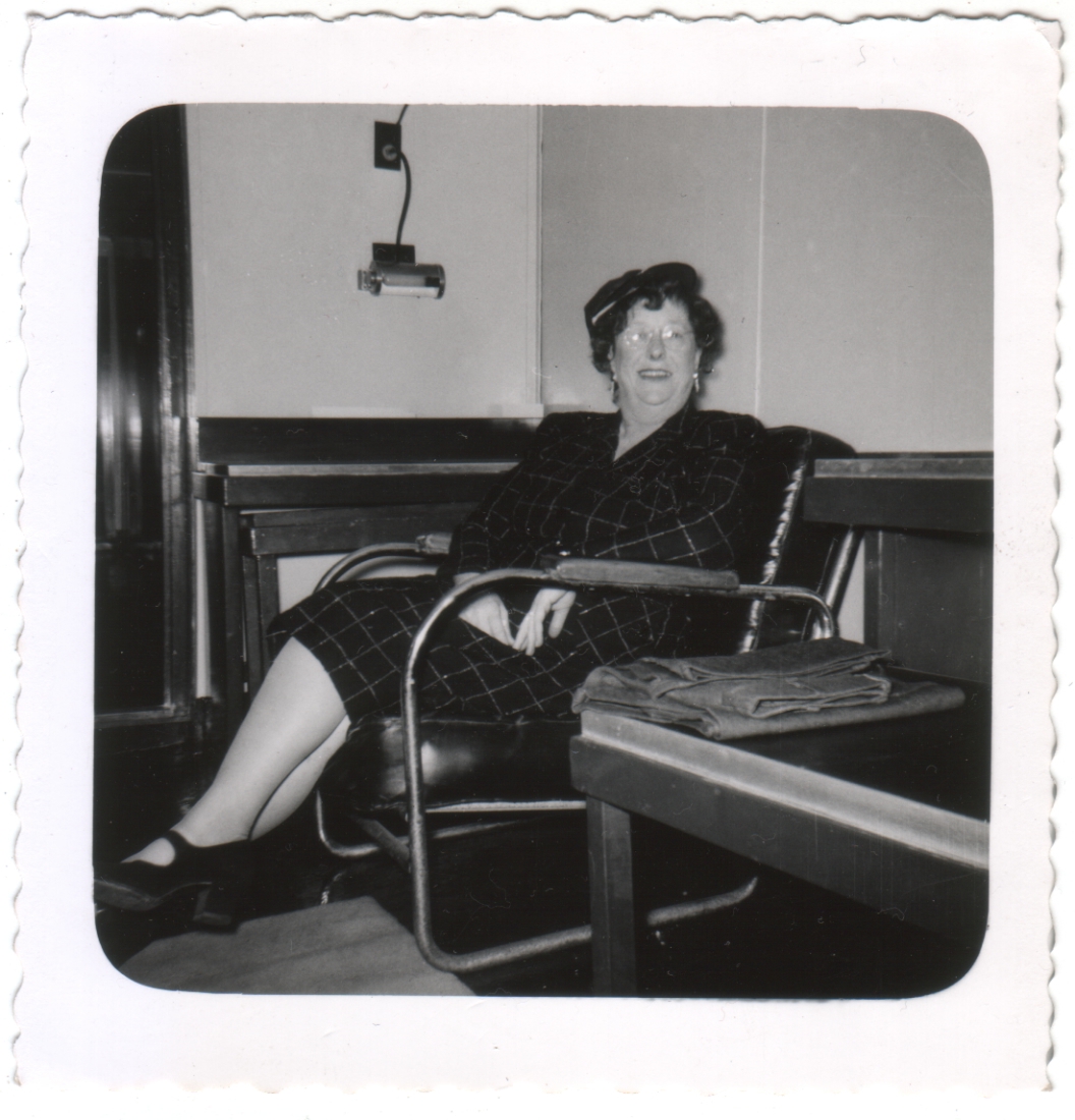 This is Aunt Maude. She and her niece are waiting for Aunt Maude’s new driver’s license. It should be ready any minute.