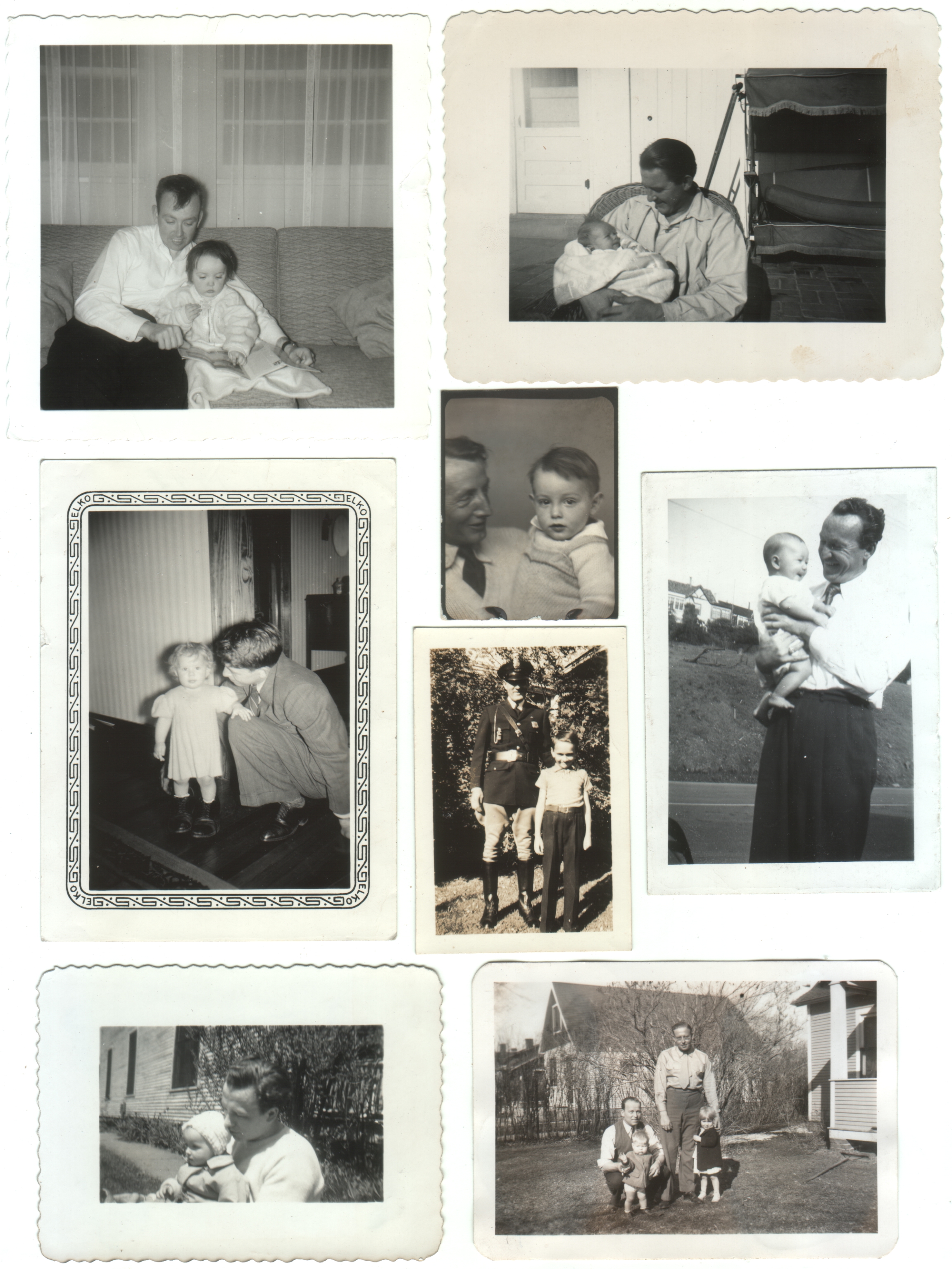 Top left photo is date stamped March 1956. Written on the back of the center left photo is April 1941 / Note M.E. shoe’s. Written on the back of the center photo with the man in uniform is George Latulippe / 917 East 6 So / Salt Lake City. Written on the bottom left photo is 10 months / April. Otherwise undated and unidentified.