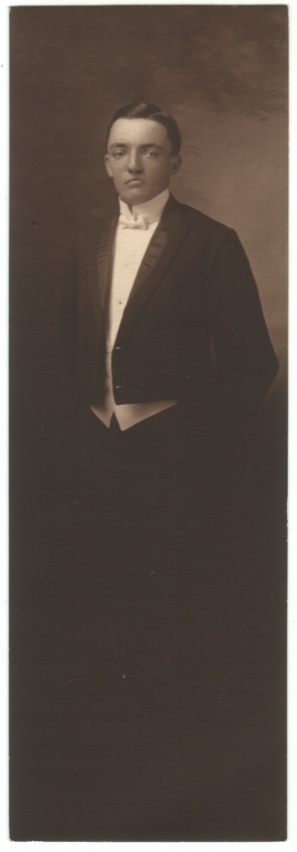 Photo measuring 2 x 5.75 inches.  Remnants of glue and paper on the back suggest it had been mounted into a cardboard frame.