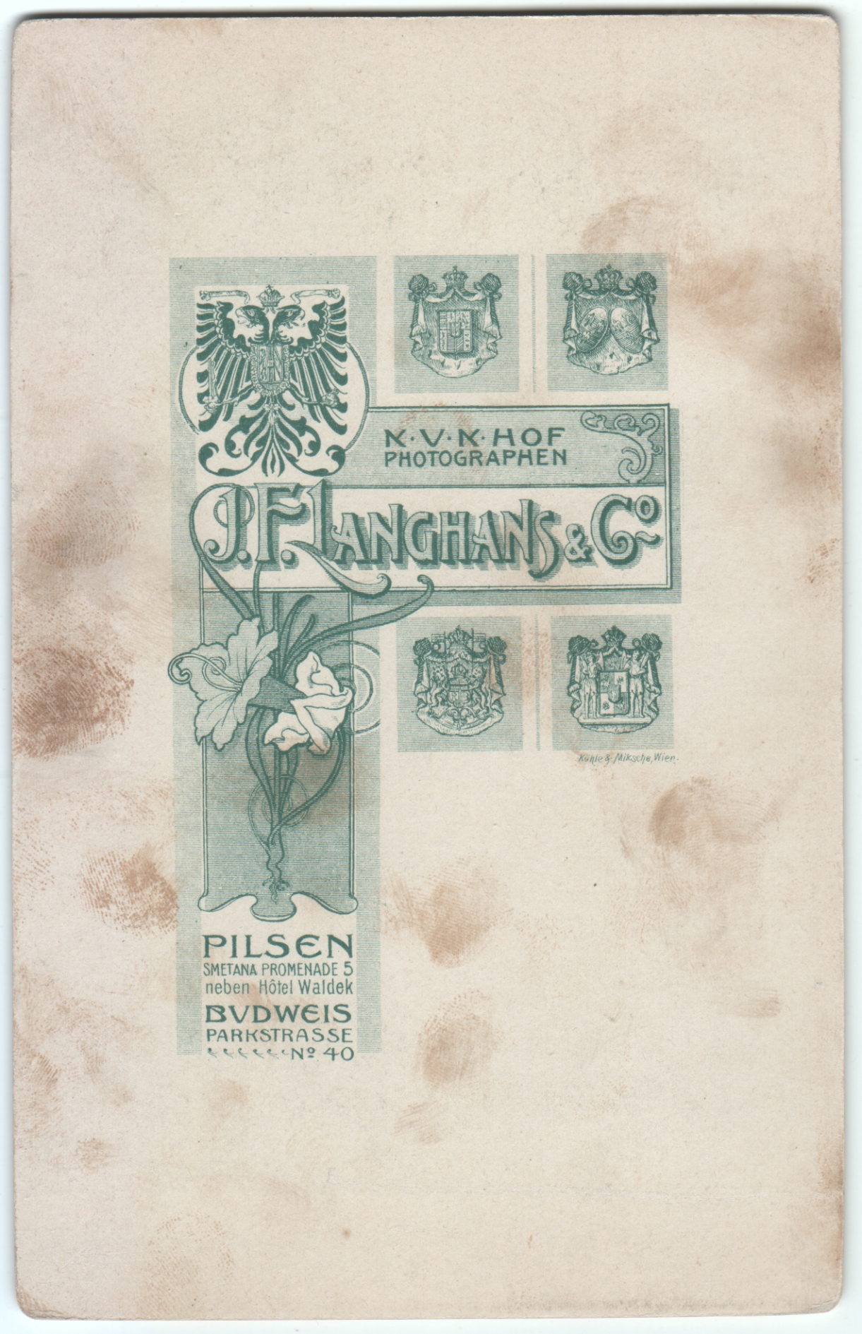 Photographer is Jan Langhans of different locations in what is now the Czech Republic. A number is stamped into the lower right corner of the paper, and if that’s the date, then it’s 1903.