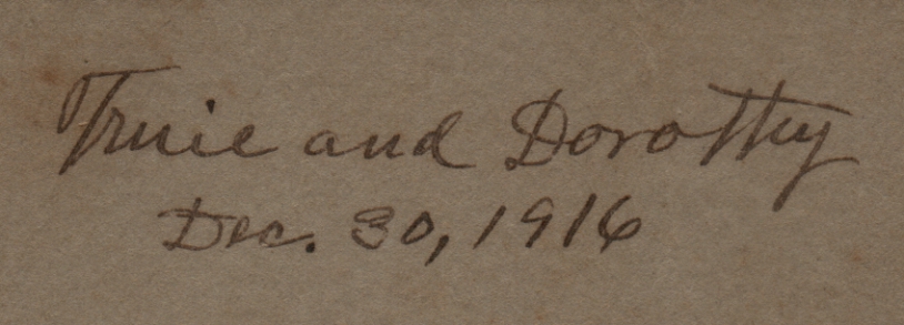 Written on the back is what appears to be Truie and Dorothy / Dec 30, 1916. Click here to see the writing for yourself.