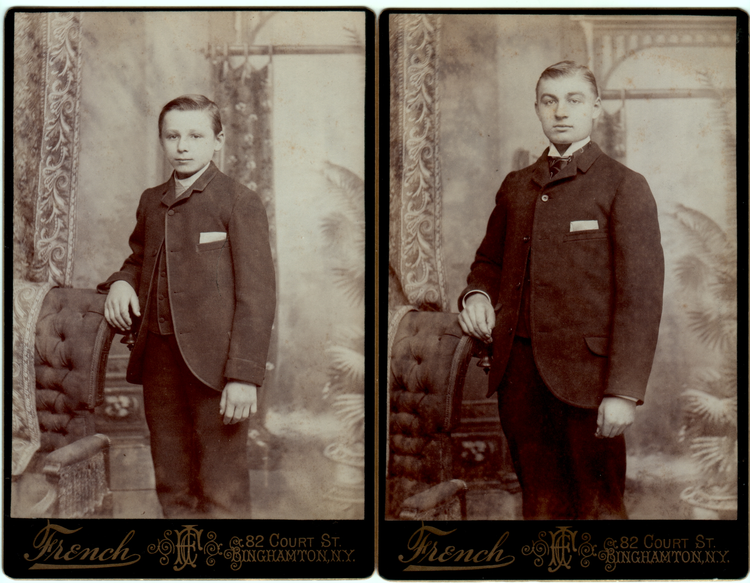 Photographer for both is French of Binghamton, New York.  (The fancy monogram in the middle should be comprised of the photographer’s initials, but I’m having a hard time sorting them out.)  Otherwise undated and unidentified.
