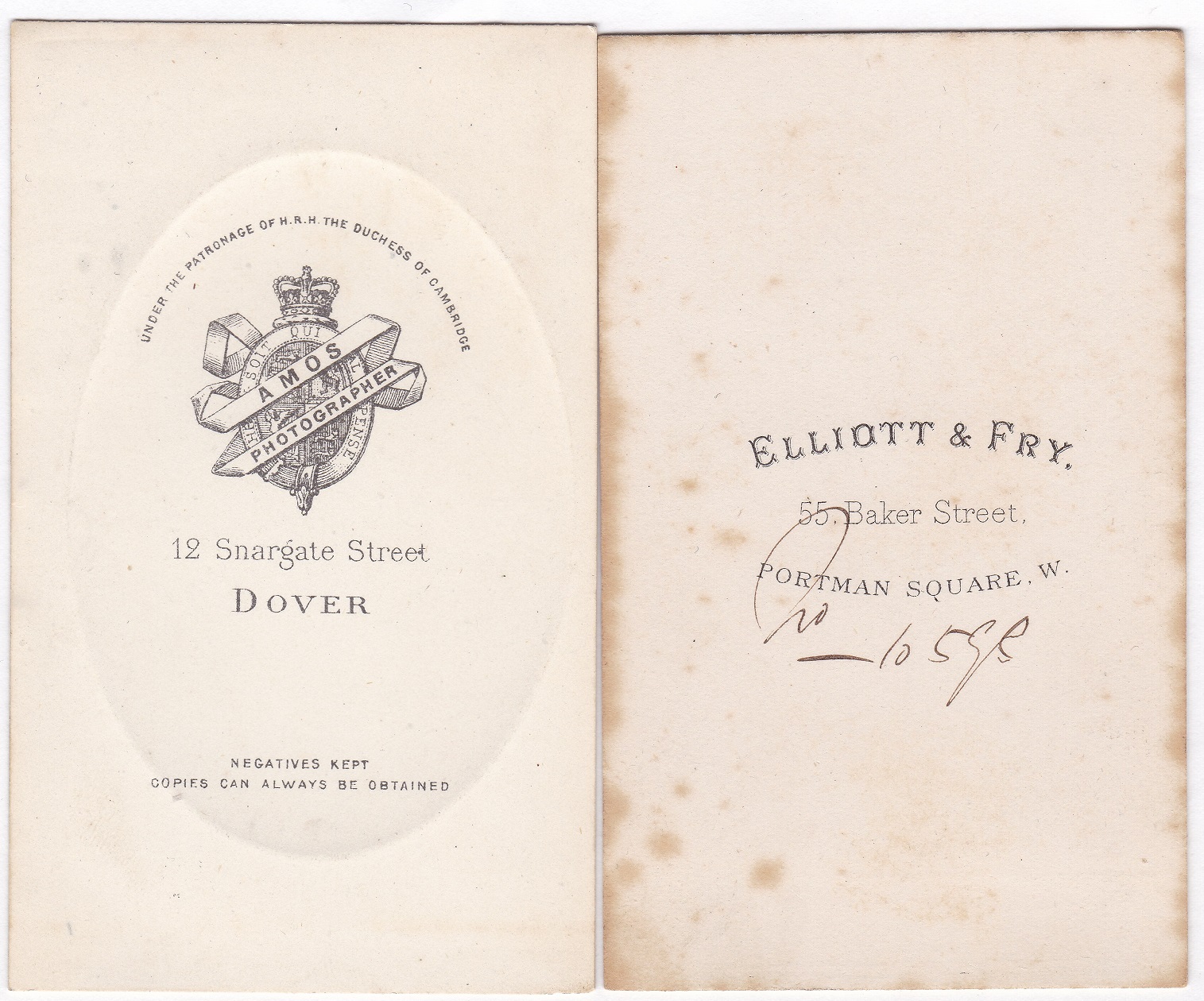 The photographer on the left is George Amos of Dover, England.  The photographer on the right is Elliott & Fry of London, England.  Otherwise no identifying information.