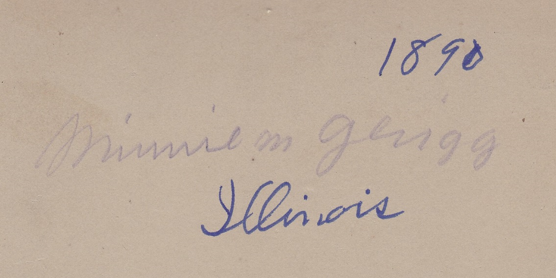 Written on the back is “1890 / Minnie M Gerigg / Illinois”.  Or maybe it’s Grigg instead of Gerigg.  Click here to see for yourself.