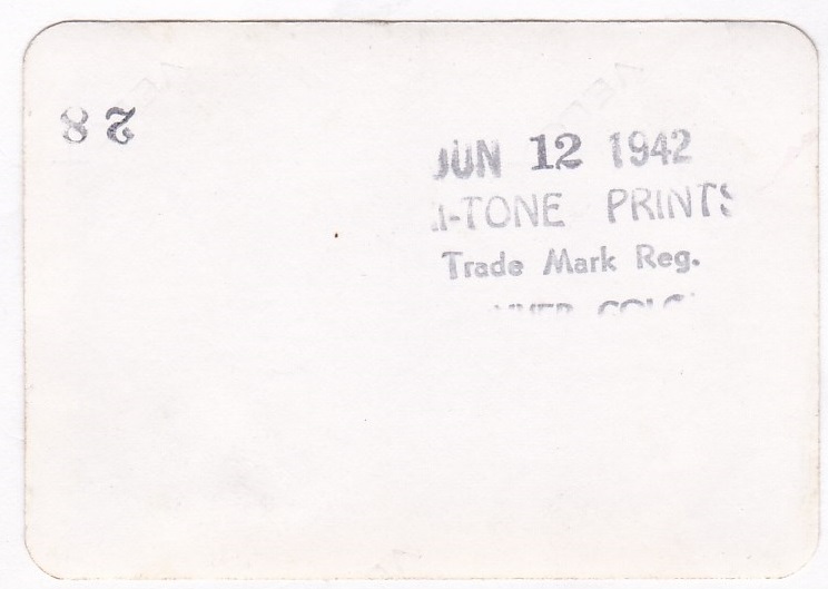 The photo printer’s stamp on the back is incomplete, but it is dated June 12, 1942, and appears to be in Colorado.