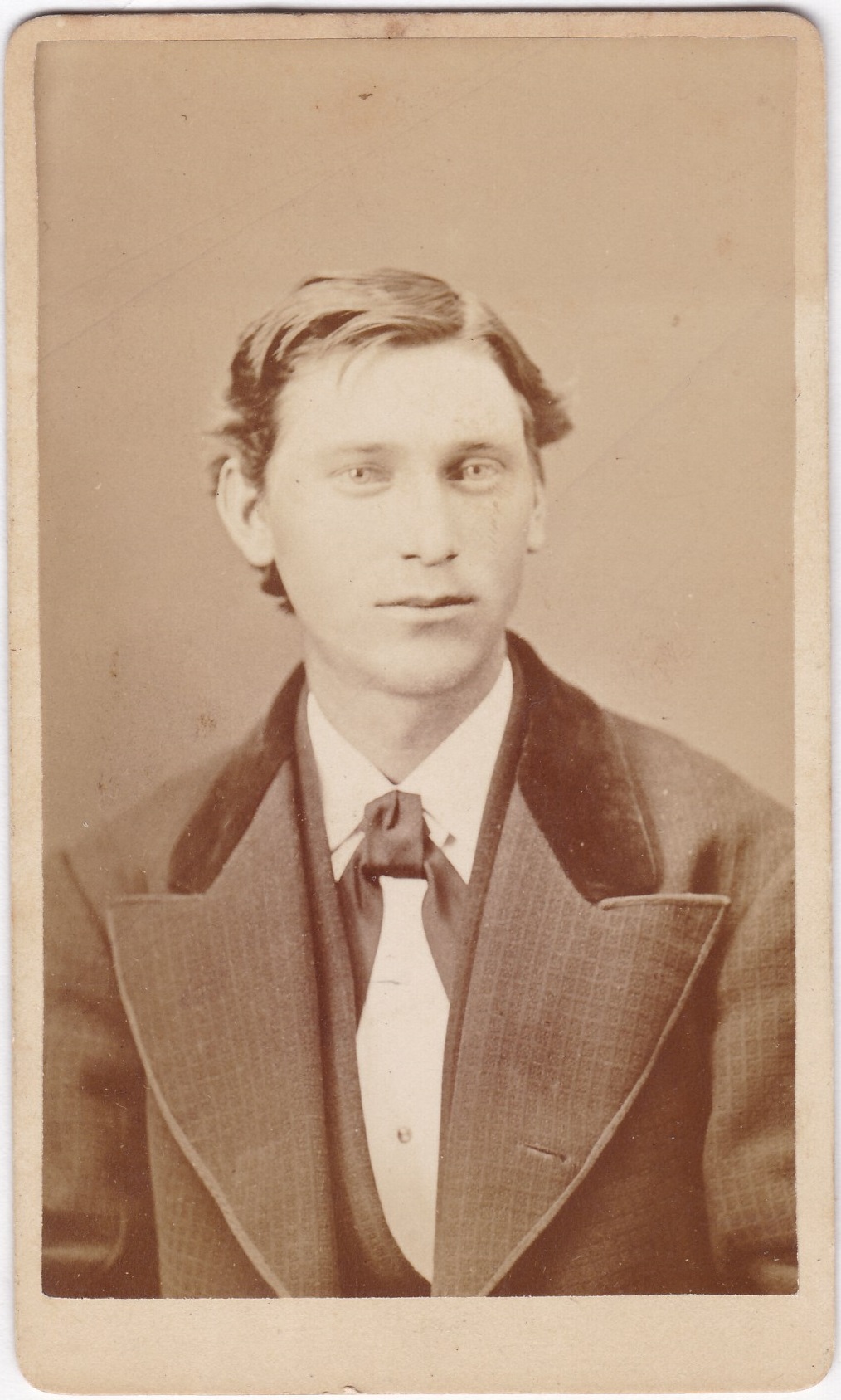 I’ve said before that faces in vintage photos sometimes seem oddly contemporary to me. I’m not sure what makes them so. But this is one of them. As for the photographer, I’m not finding much information about W. A. Bigalow beyond the fact of his existence. J. C. Sunderlin, however, left more of a footprint, at least on the internet. John Corbin Sunderlin (1835-1911) had a varied life (itinerant photographer, Civil War soldier, ordained minister, etc.) He operated a photo studio out of a traveling wagon in New York, though by the 1880s, he had settled in New Jersey and ran a photo studio there. So how did he get involved in the Bigalow studio? The fact that he’s listed as an “operator” suggests to me that he may have taken over temporarily while Mr. Bigalow was indisposed for some reason. since if he’d bought the studio outright, he likely would have changed the name. But I don’t really know.