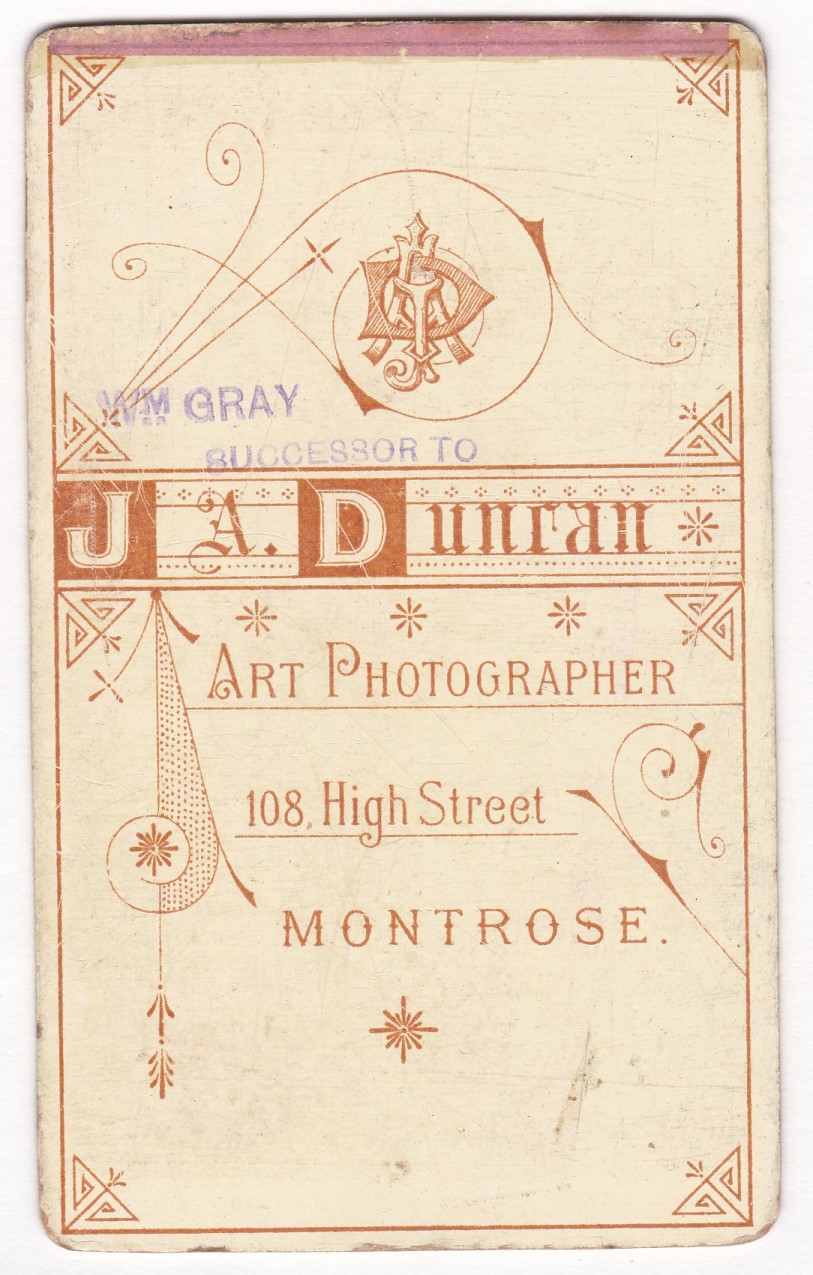 Photographer is William Gray, “successor to” J. A. Duncan, of Montrose, Scotland.