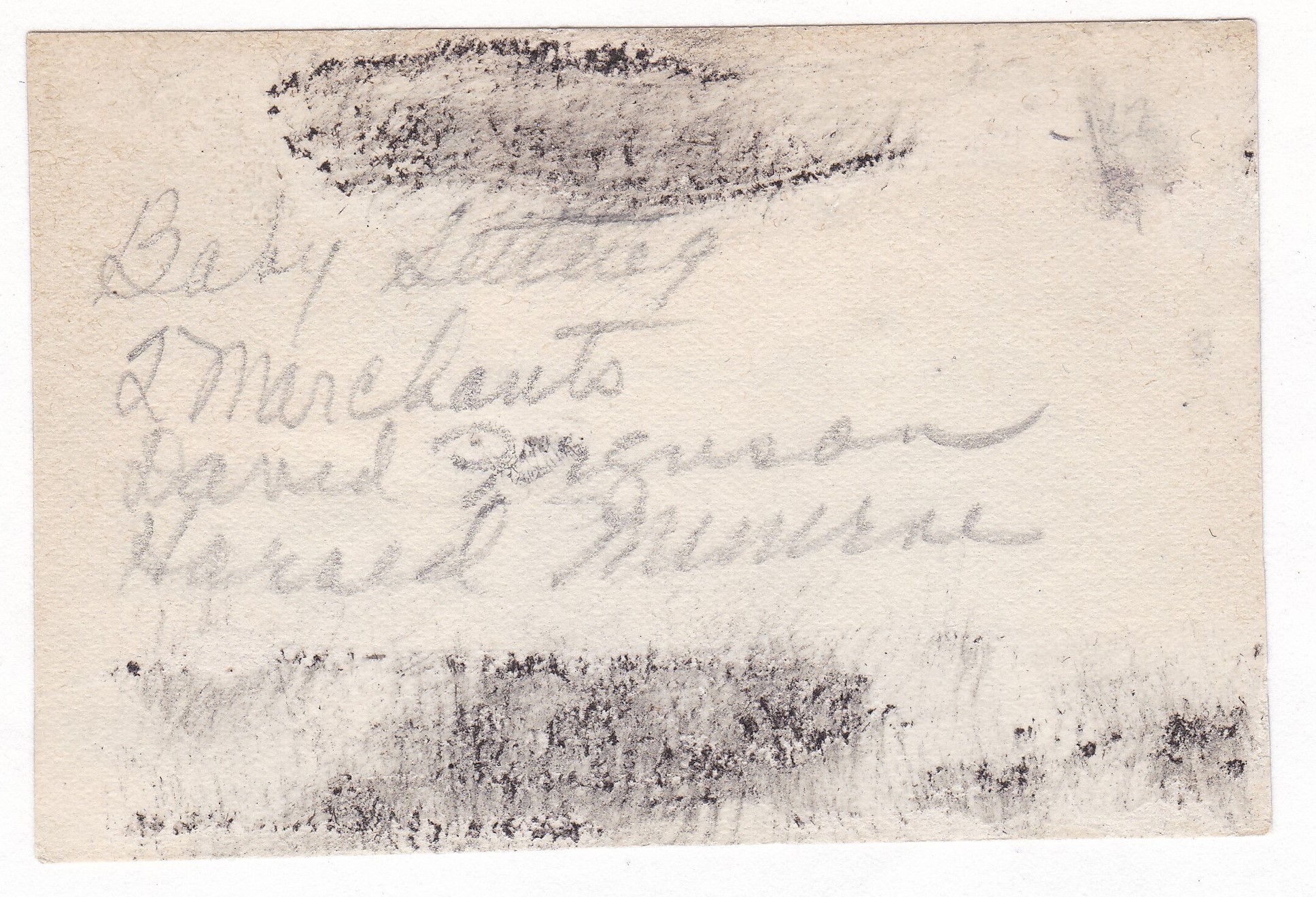 Written on the back in pencil is Baby sitting / 2 Marchants / David Ferguson / Harold Minerve. I’m actually guessing on that last name, See this scan if you’d like to take a shot at deciphering that handwriting.