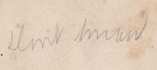 I can’t read that, so I don’t know if it’s a name, or if it’s even relevant to this picture. In any case, I loved this image. She has a good, strong look. I’m not sure what she’s holding in her hands, but it appears to be some sort of card or letter, along with a strand of ivy. And it took a moment for me to notice that she’s wearing gloves, though it seemed obvious once I did. I’m intrigued by the choice of plants, and by the way no effort was made to disguise the pot.