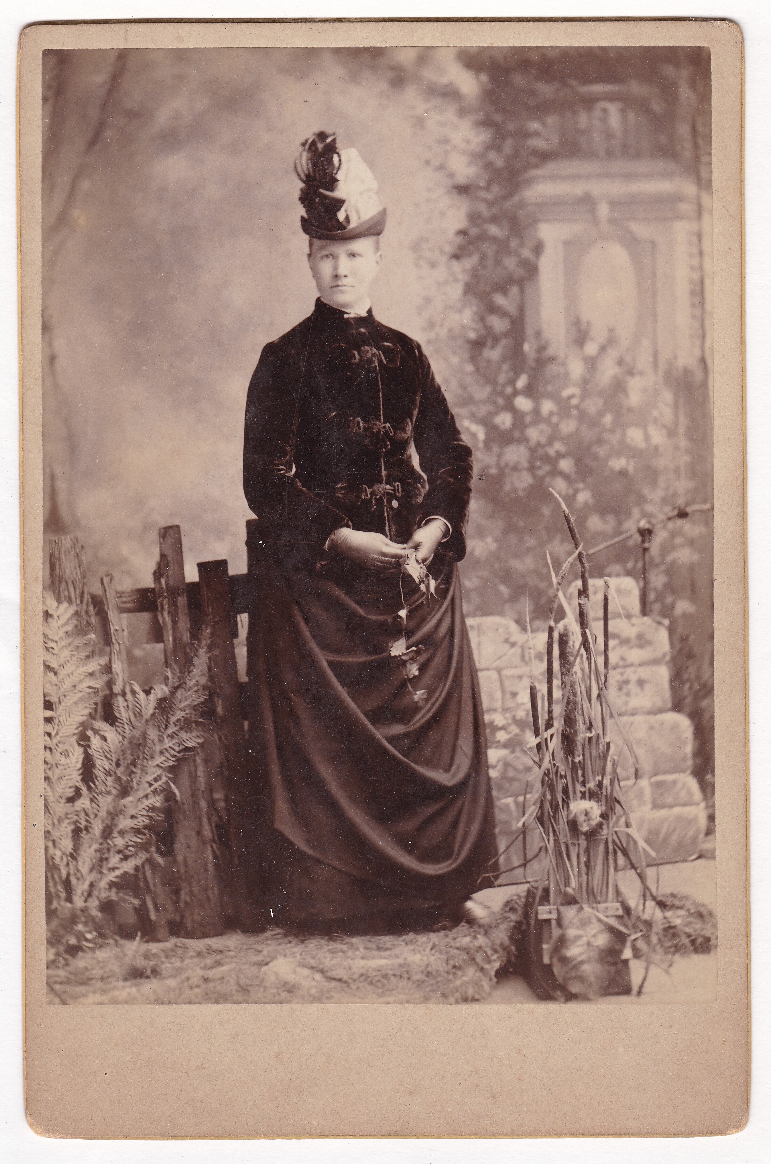 I went to a rare book fair today, and while I did buy a book, I couldn’t resist the dealers selling old photos. This is one of the ones I bought. It’s a cabinet card (4.25 x 6.5 inches), and the photographer is W. I. Williams & Co of 914 Market Street in San Francisco. (It’s always fun for me to find photos from the city where I live.) It’s undated, and there’s no identifying information, though this is scribbled in pencil on the back: