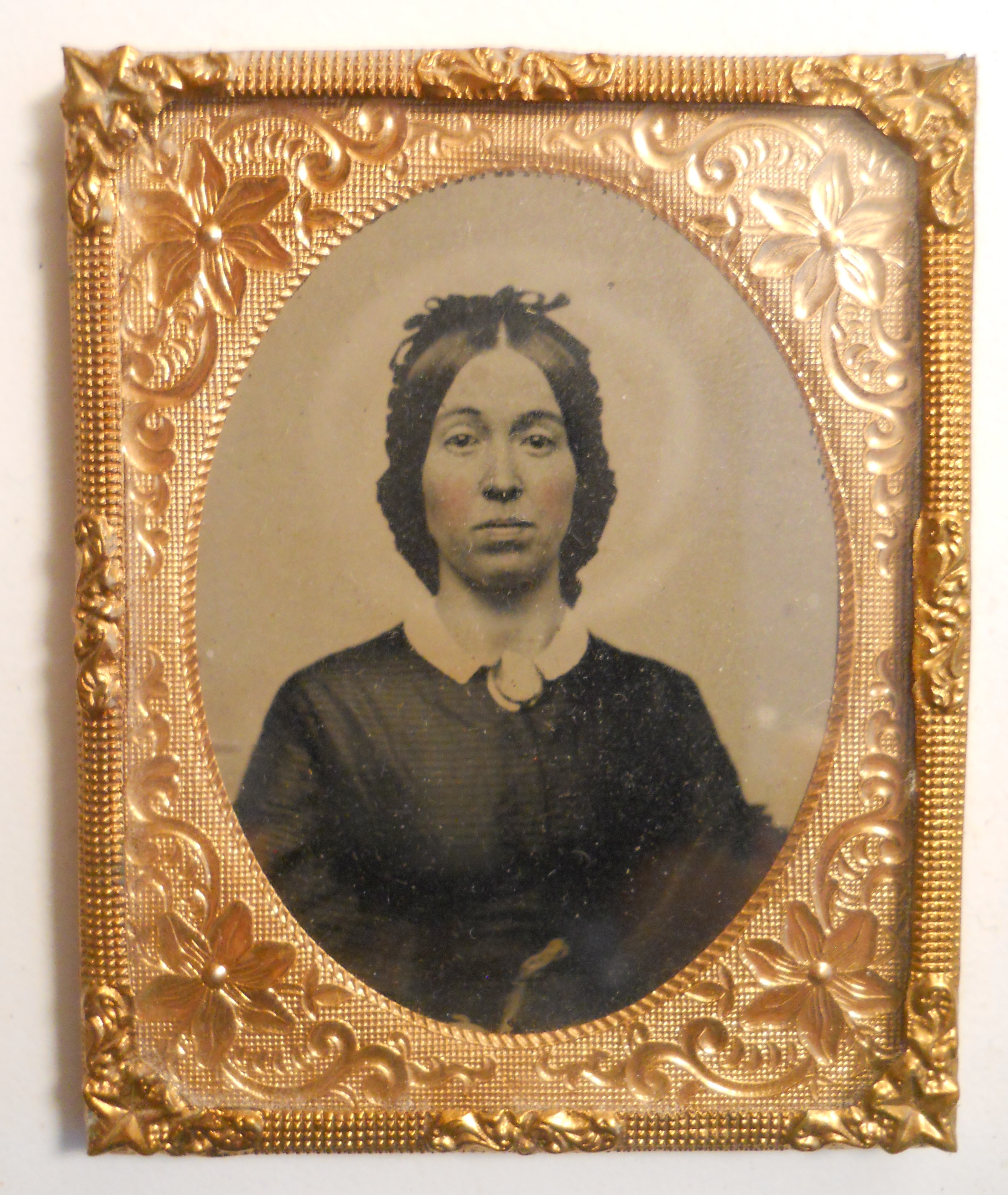 It’s generally believed that most ambrotypes were made between 1854 and 1863, so she almost certainly she sat for this portrait during that period. After that, tintypes and cartes-de-visite became the dominant formats. As you point out, ambrotypes were cheaper to make than daguerreotypes, which allowed people to sit for portraits who otherwise might not have been able to.