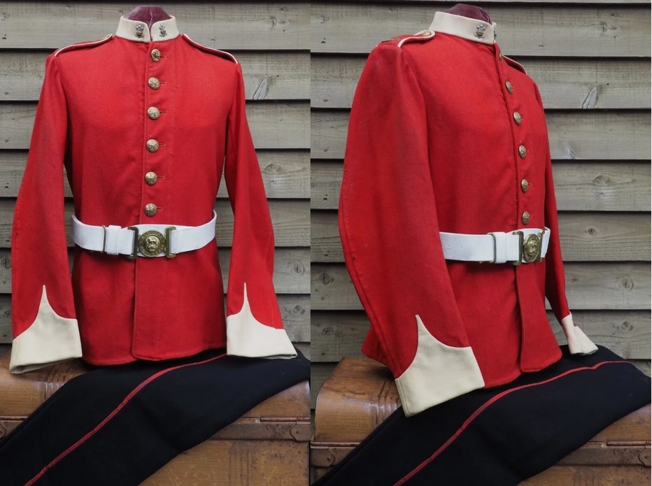 Remembering that it’s Mother’s Day, I thought I’d post this one. I took a guess when calling them soldier and mother, since I have no idea who these people are, or what their relationship is to each other. But it seems like a reasonable assumption. Perhaps they took this photo as he was about to ship off somewhere? He’s wearing a British army dress uniform. Here’s what it looks like in color (an image I shamelessly swiped from somebody’s eBay listing).