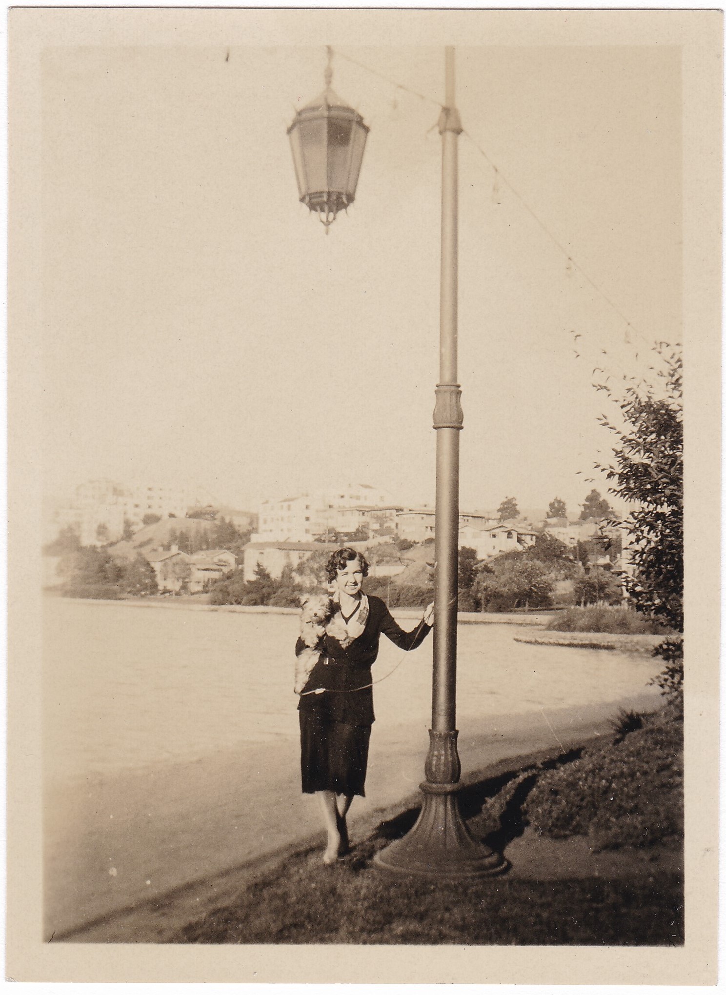 When I held this little 2.5 x 3.25-inch photo in my hand, I couldn’t tell what she’s carrying. I thought it might just be a parcel, but I was hoping it was something fun, like a dog, telling myself I like the photo regardless. I got it home and enlarged it, and yay, it’s a dog! There’s no information about this photo, but it looks like a nice place.