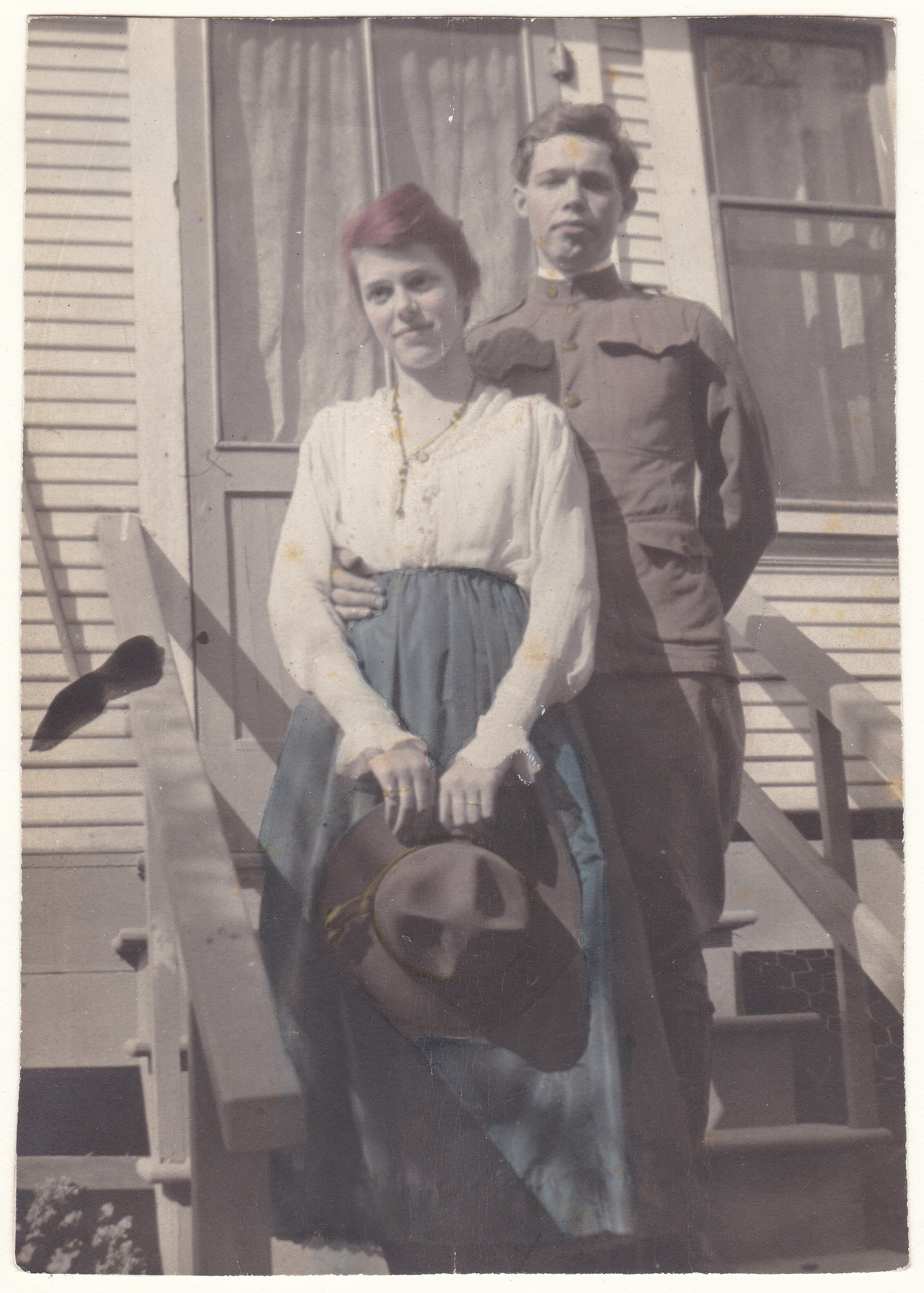 Her beau wasn’t bad-looking himself, but his serious expression makes him appear older than he probably was. I hope he wasn’t headed off to the front lines in WWI.