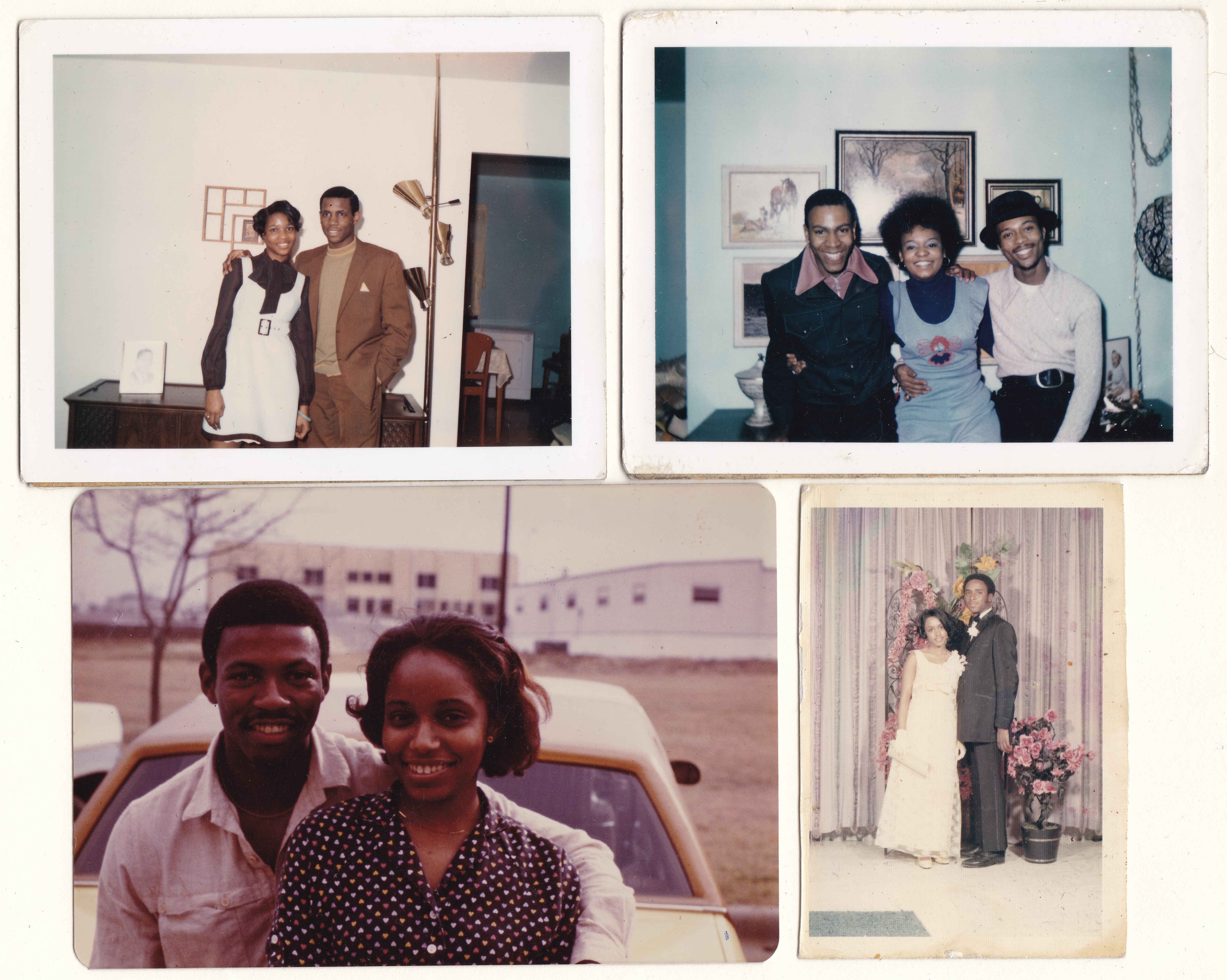 As for these photos, the top two are Polaroids. On the back of the top left photo is written “Easter Sunday / Karen and Barry” and date-stamped April 6, 1969. The top right photo is dated 4-19-72. The bottom left photo has no information. And written on the back of the bottom right photo is “John Hay Senior Prom / June 6, 1969 / Wayne Nix & Gloria Mitchell”.